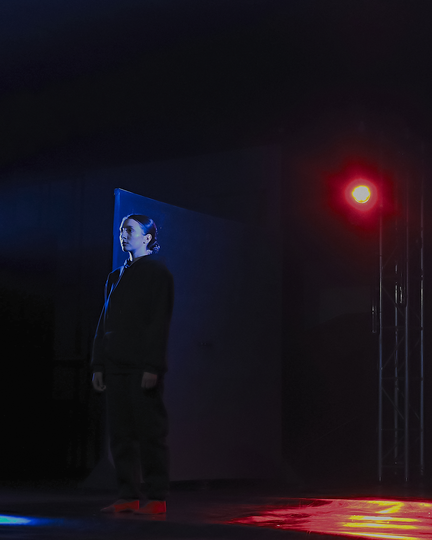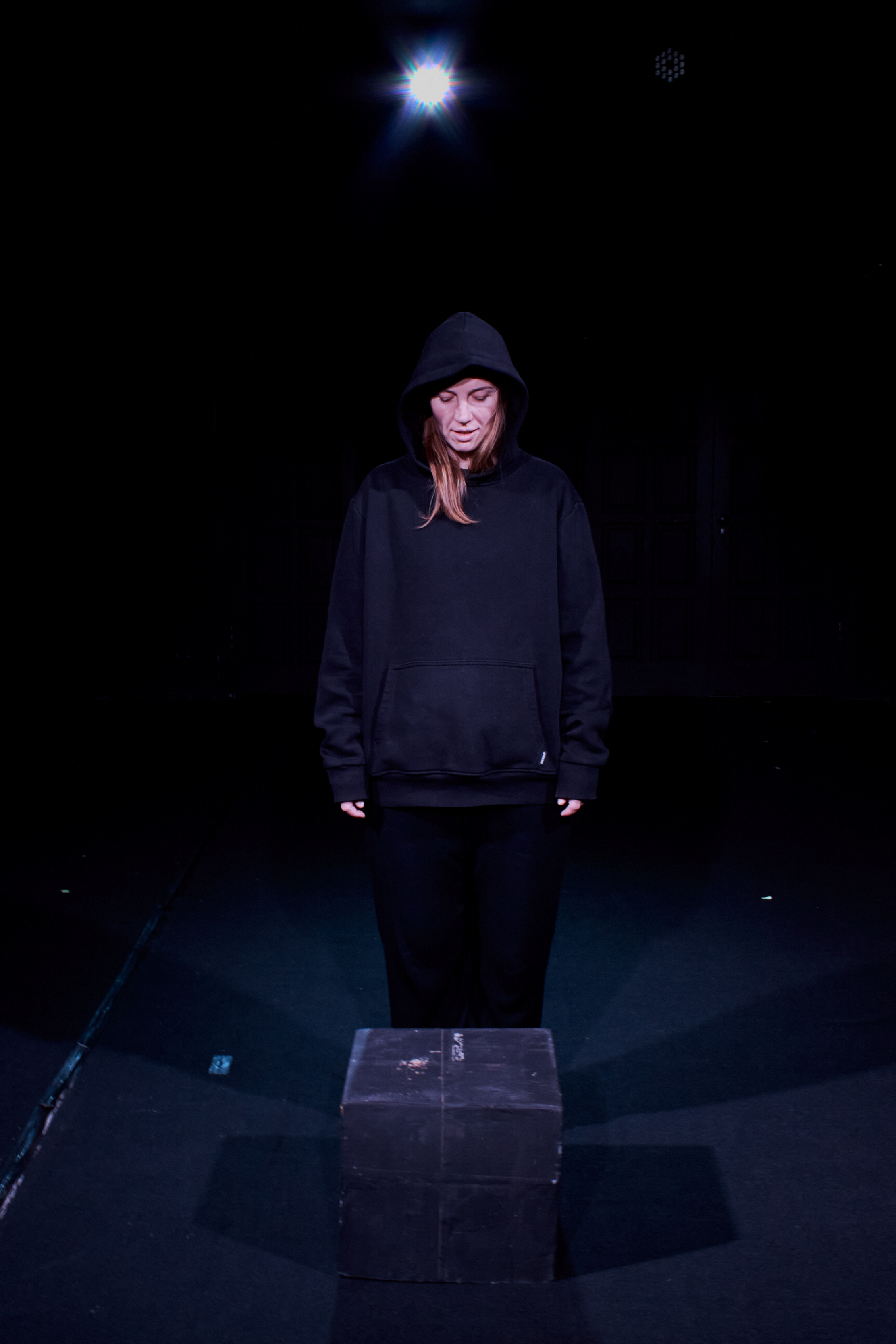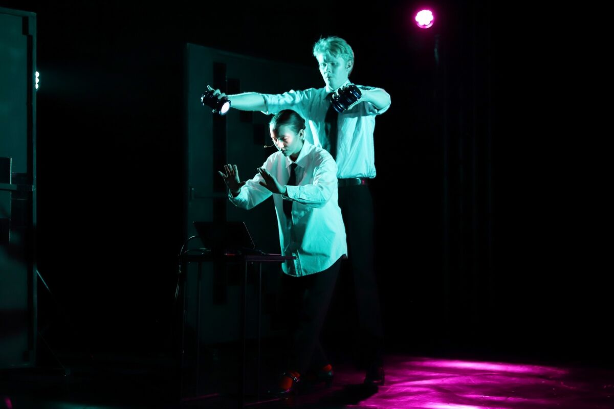 Во время спектакля пространство будет балансировать между бытовой сценой и метафизическим триллером: здесь будут слышны шумы алгоритмов, языковые сбои и тревожная тишина, в которой каждый зритель, при желании может услышать себя.