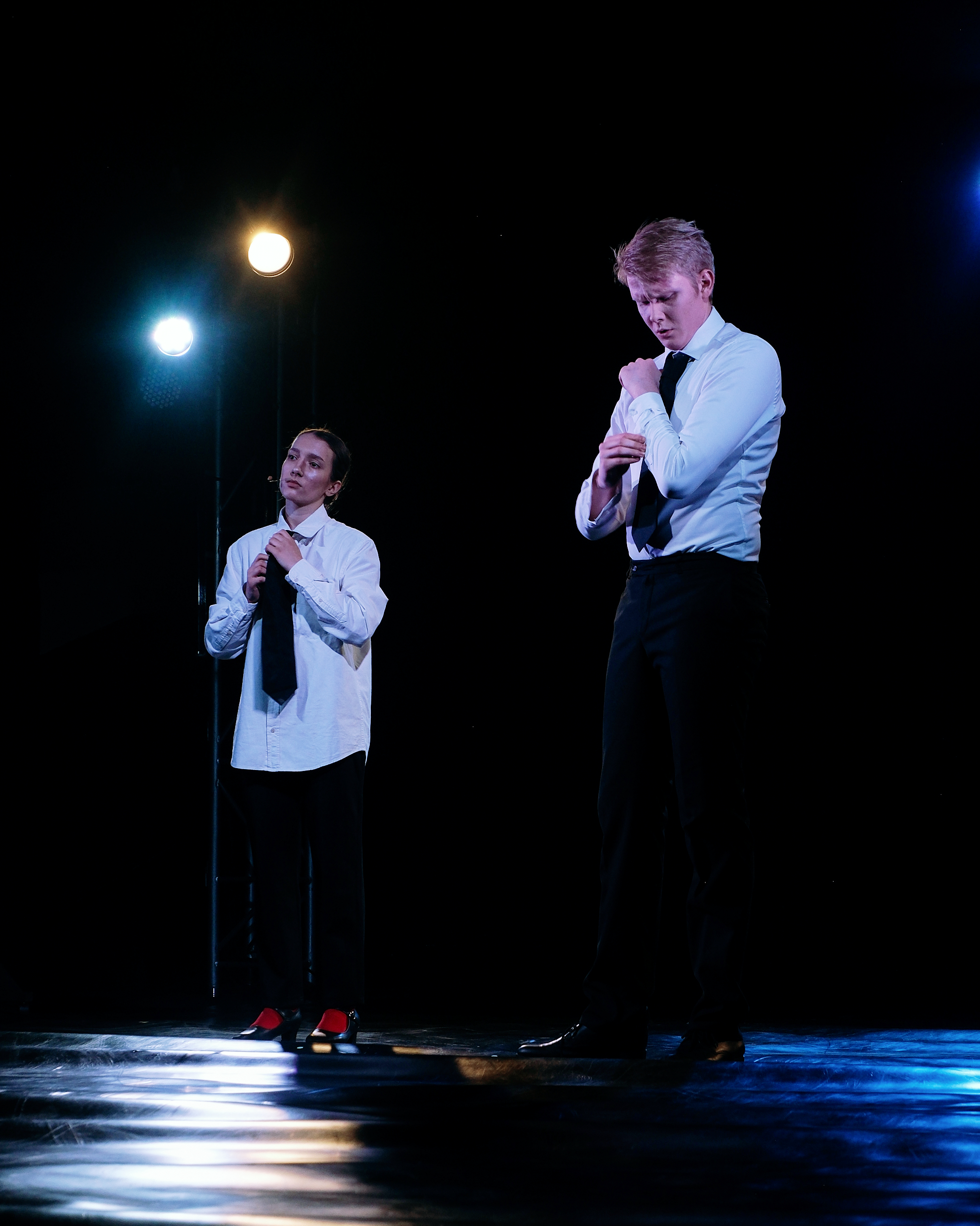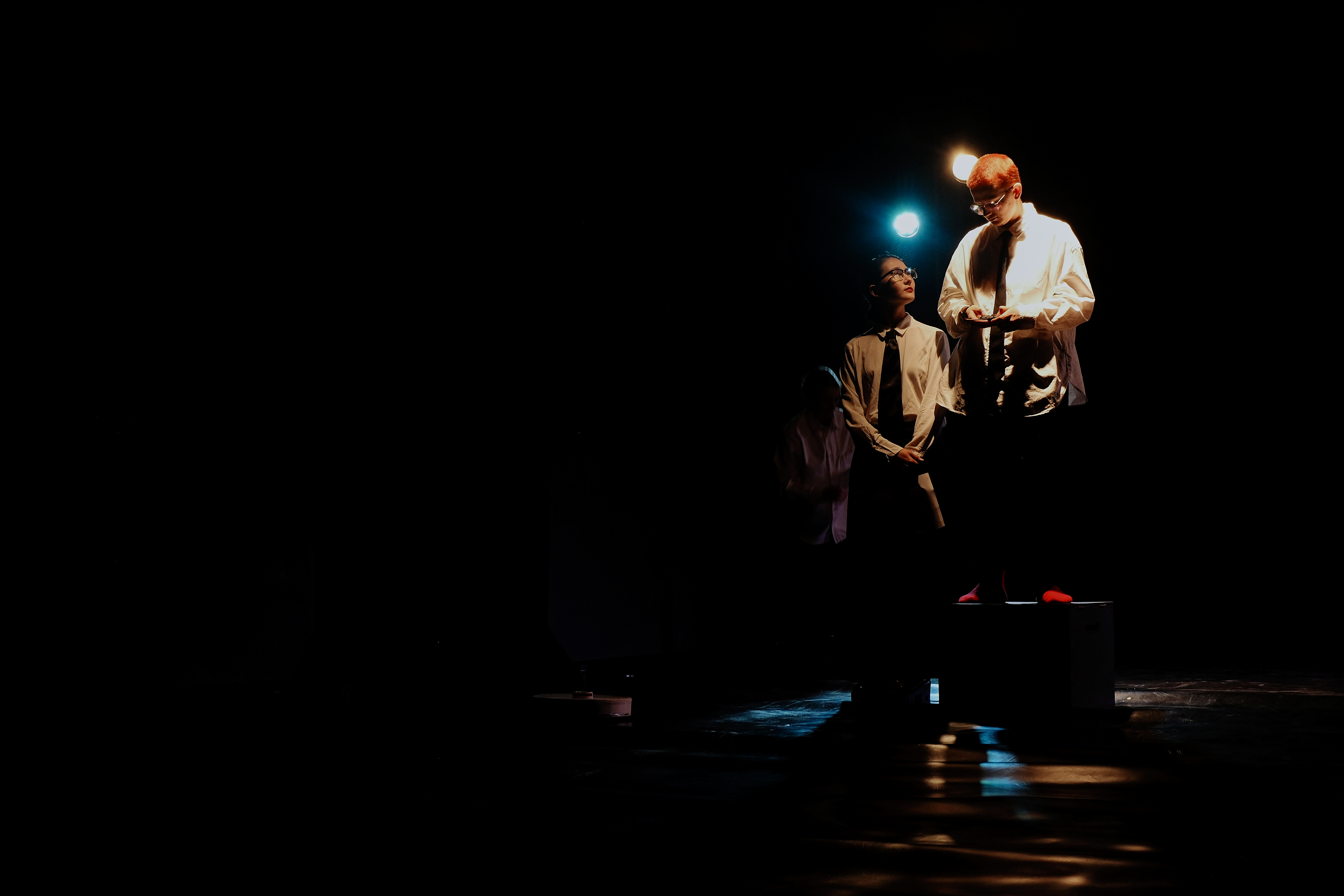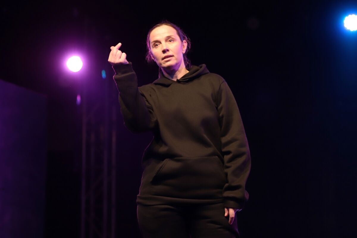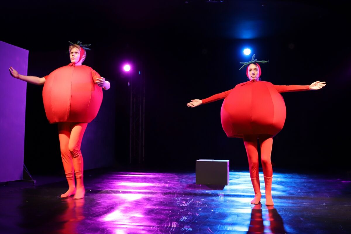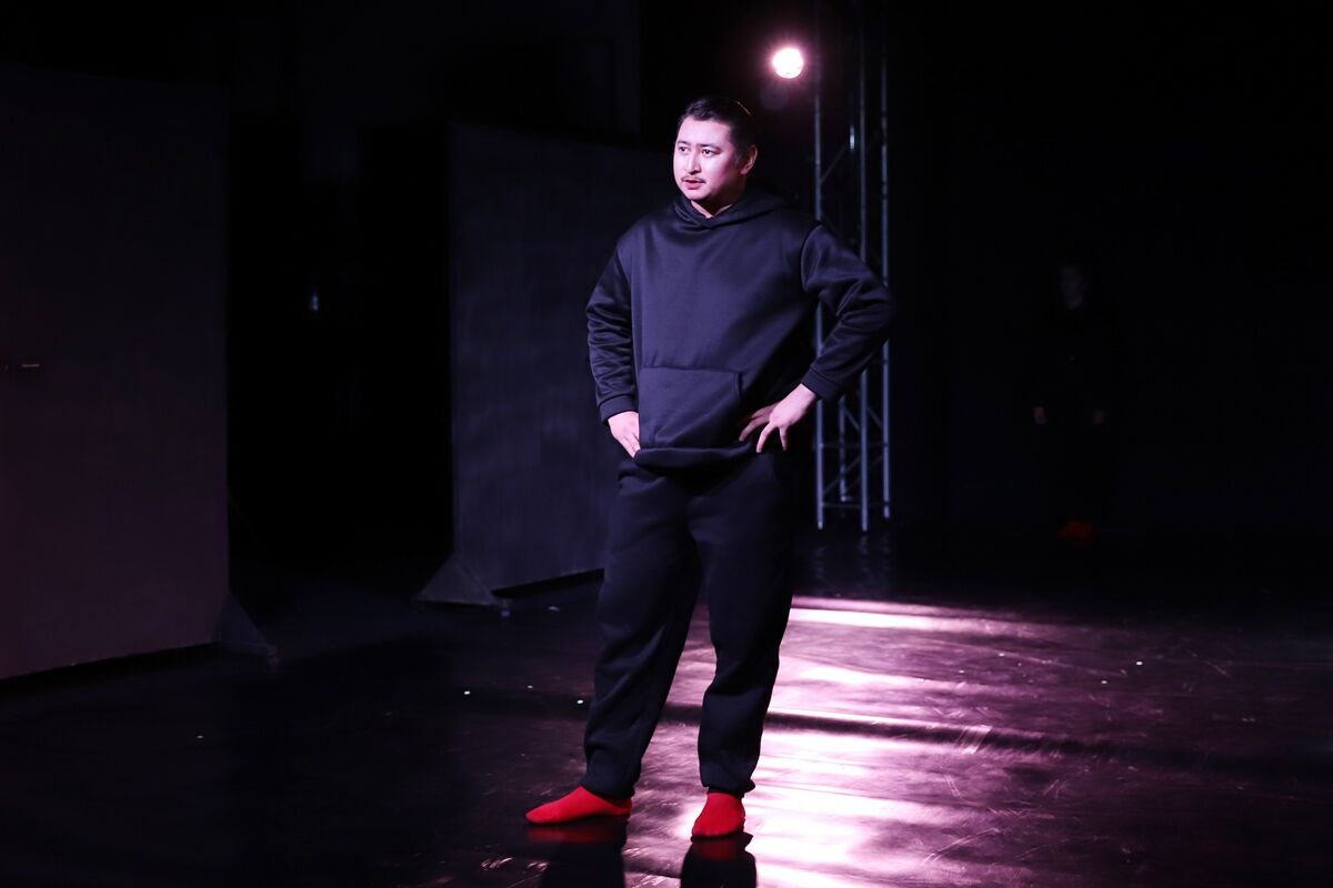 Это означает, что на сцене будет лабораторный эксперимент: актёры могут говорить не свои реплики [так придумала режиссёрка], сюжет будет развиваться нелинейно [так придумал драматург]. Могут прочесть стихи и грубо выражаться [но немного]. Будут шутки [но никто не смеётся].
