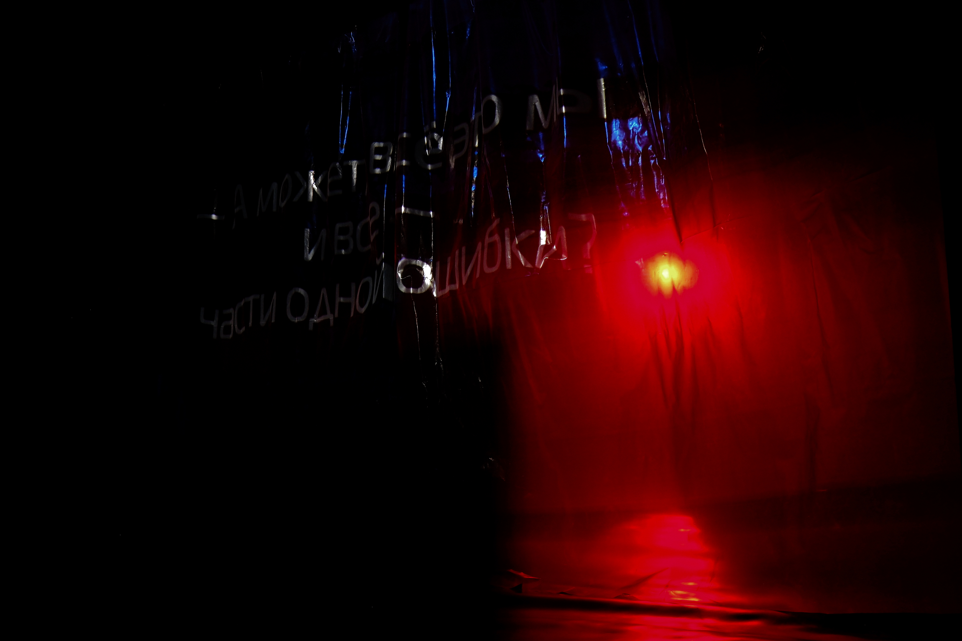 Это не отражается в происходящем явно, но такое заявление даёт нам надежду, что это будет опорой для зрителя, которая позволит посмотреть на происходящее, не просто как на всё объясняющее представление, но также как на объект искусства, который будет читаться зрителем в контексте своего опыта, чувств, происходящего вокруг, настоящей заявленной авторами рамки и запустит внутренний каскадный монолог на тему.