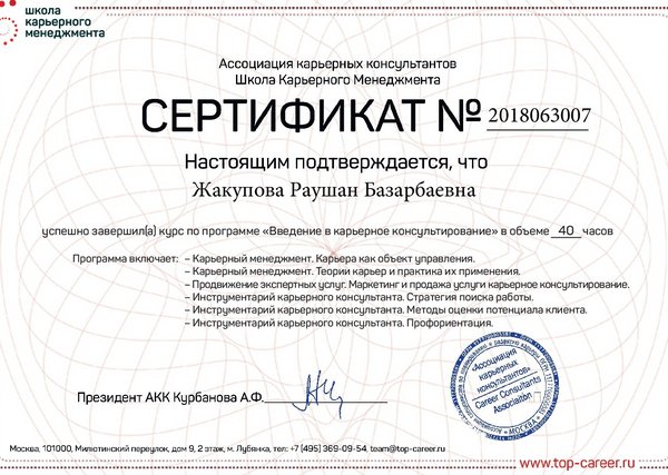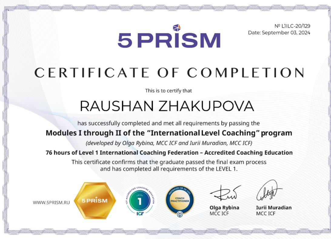Раушан Жакупова - эксперт в области HR, коуч (по стандартам ICF), карьерный консультант